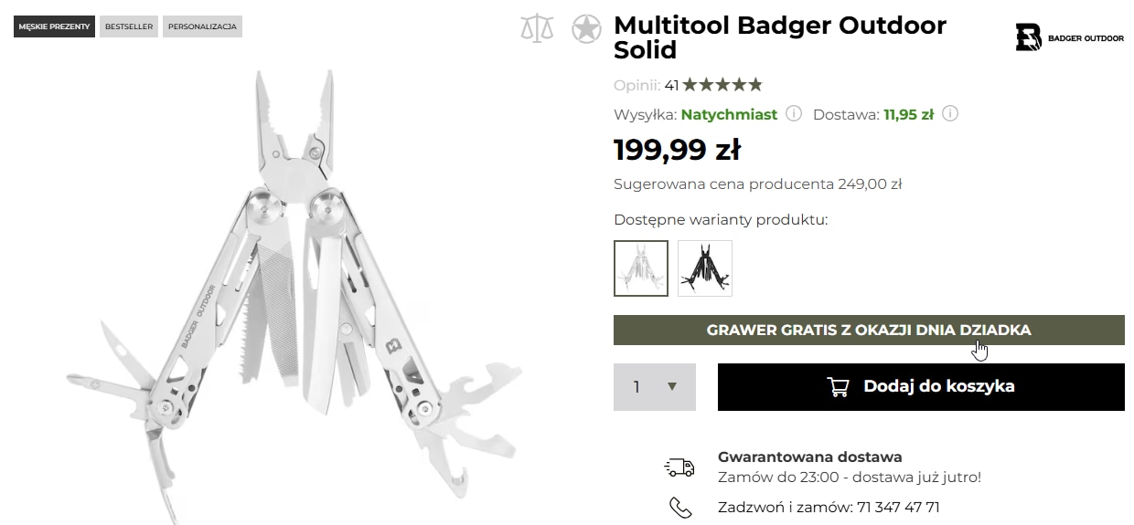 - Wybierz produkt z opcją graweru i zaznacz, że chcesz grawer gratis: