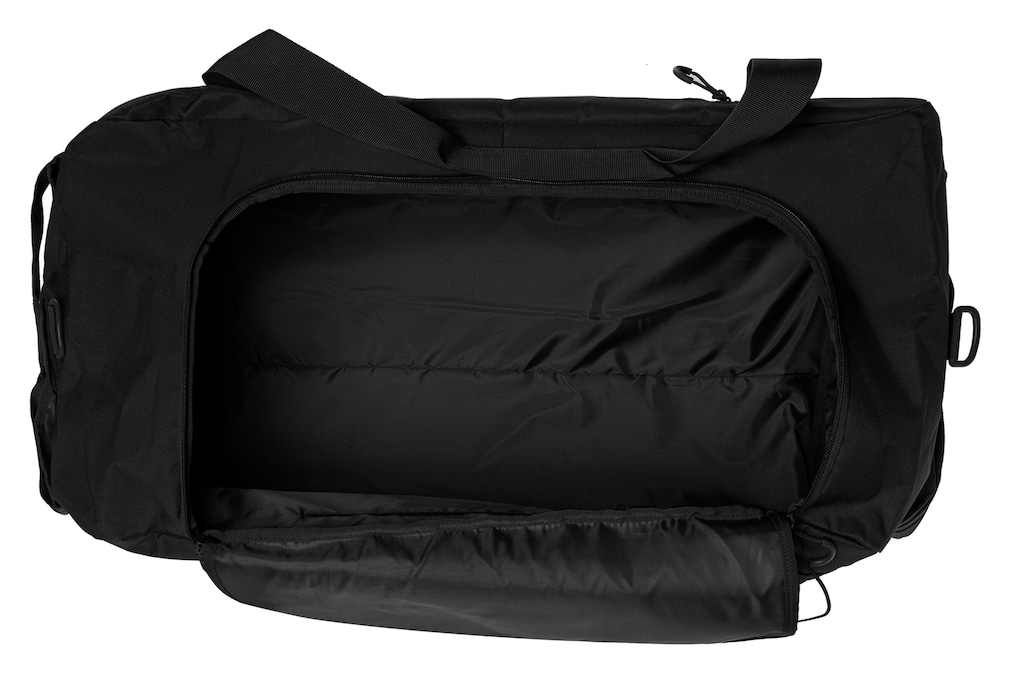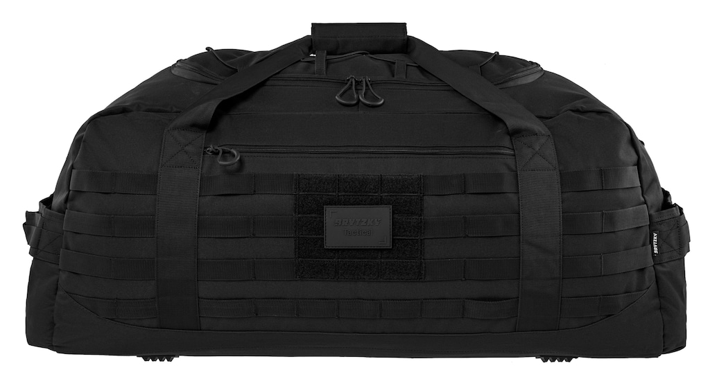 Torba o pojemności 100 l z trwałego poliestru 600D Oxford w kolorze czarnym. Zewnętrzna powierzchnia materiału pokryta jest powłoką poliuretanową, która zabezpiecza przed wilgocią. Sprawdzi się do zastosowań taktycznych, survivalowych oraz codziennego przenoszenia ekwipunku. Komfortowe przenoszenie torby zapewnia szeroki pas na ramię oraz podwójny uchwyt z zapięciem na rzep.