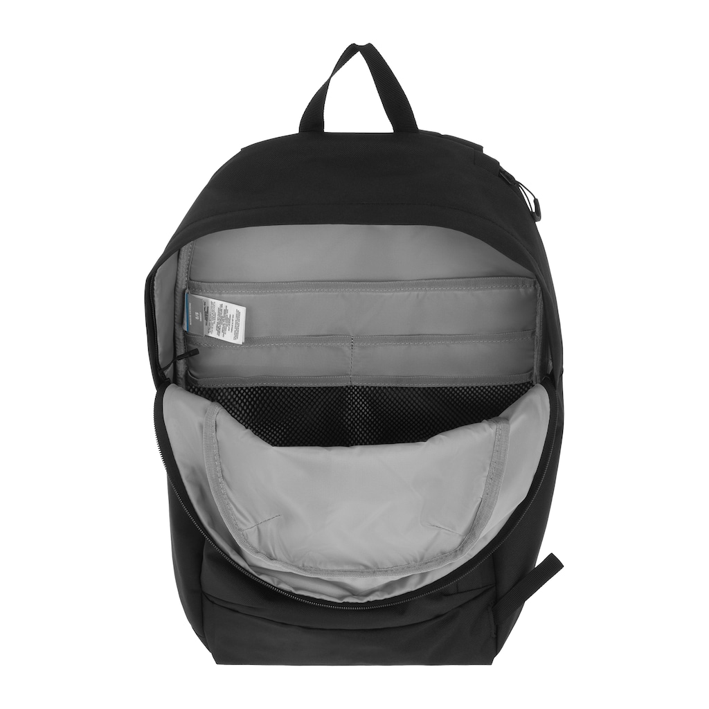 Plecak ma pojemną komorę główną z płaską przegrodą w środku oraz licznymi siatkowymi kieszeniami, które ułatwiają organizację przechowywanych rzeczy. Zamek błyskawiczny komory głównej pozwala na szybki dostęp do zawartości przez rozłożenie przedniej części plecaka. Z tyłu znajduje się wyściełana kieszeń na tablet lub laptopa. Z przodu jest kieszeń zamykana na zamek błyskawiczny. Na boku znajduje się elastyczna kieszeń przeznaczona na butelkę z wodą lub bidon.