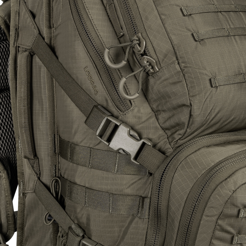 Model wyposażono w liczne taśmy systemu MOLLE/PALS, które pozwalają na przypięcie dodatkowego wyposażenia. Pasy kompresyjne z klamrami mogą służyć do zmniejszenia objętości plecaka lub do montażu większej ilości sprzętu. Z przodu znajduje się prostokątny rzep, pozwalający na zamocowanie np. flagi państwowej, godła jednostki bądź tzw. Morale Patches.