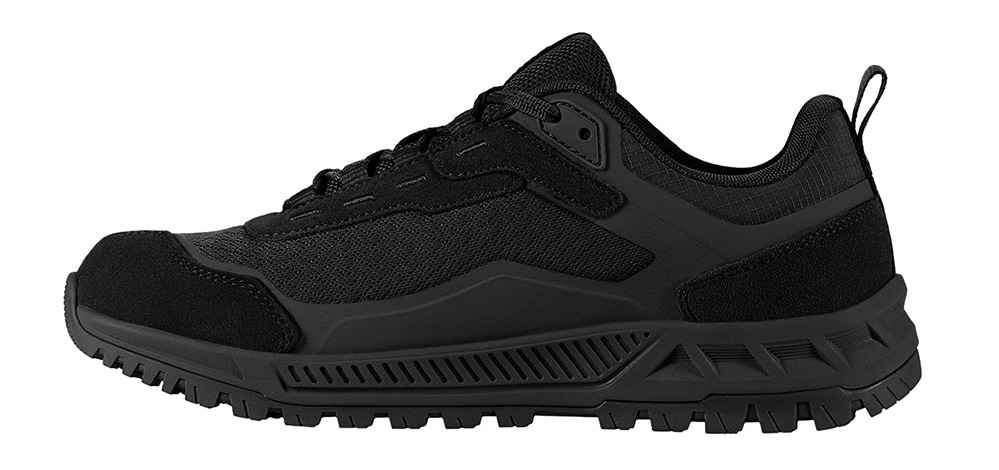 Niskie, lekkie buty w kolorze czarnym, które łączą cechy obuwia trekkingowego i sportowego. Zostały zaprojektowane do codziennego używania w cieplejsze dni. Świetnie sprawdzą się jako uniwersalne buty miejskie, podczas krótkich wypraw w terenie czy pieszych wędrówek. Ich stylistyka sprawia, że dobrze komponują się zarówno z odzieżą militarną, jak i klasycznymi jeansami.