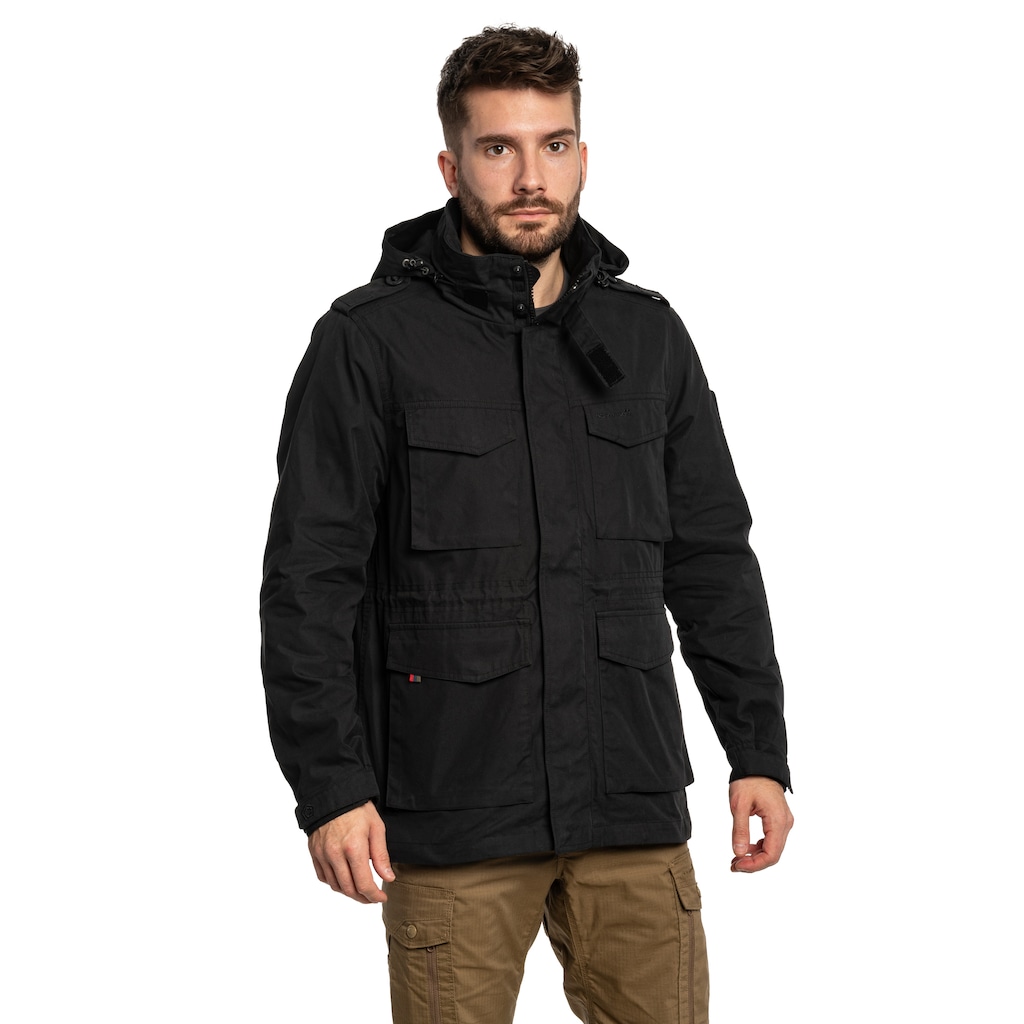 Uniwersalna kurtka w odcieniu Black, zainspirowana kultowym amerykańskim modelem kurtki M65, cenionym globalnie za praktyczność oraz trwałość. Uszyta jest z mieszanki poliestru i bawełny, wzbogacona o kaptur schowany w wysokim kołnierzu oraz 7 funkcjonalnych kieszeni.