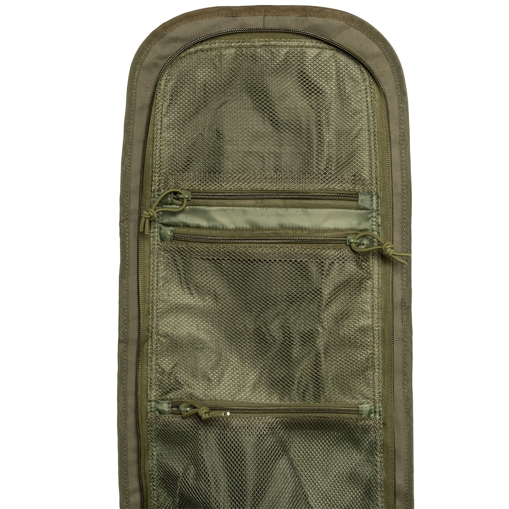 Komora główna oraz kieszenie zamykane są na zamki błyskawiczne. Po wewnętrznej stronie klapy umieszczono trzy organizery z materiału typu mesh, ułatwiające segregację drobnych przedmiotów. Zewnętrzne taśmy kompatybilne z systemem MOLLE umożliwiają mocowanie dodatkowych kieszeni lub organizerów. Umieszczony na froncie panel velcro pozwala na przytwierdzenie dowolnych emblematów, np. flagi państwowej, godła jednostki lub tzw. Morale Patches, dzięki czemu można nadać torbie indywidualny charakter.