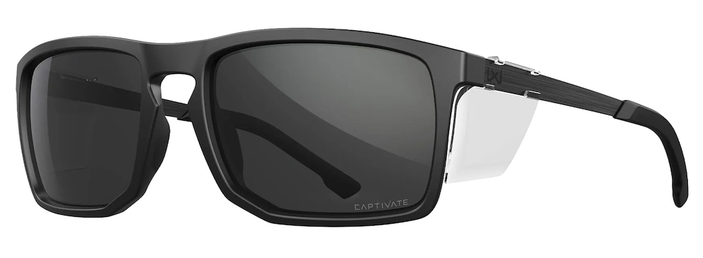 Okulary z czarną ramą, łączące nowoczesne technologie z komfortem użytkowania i wysokim poziomem ochrony. Wyposażone w polaryzacyjne soczewki z poliwęglanu Selenite, stworzone w innowacyjnej technologii Captivate, oraz lekkie, wytrzymałe oprawki wykonane z nylonu Triloid. Model spełnia wymogi klasy F, zabezpieczając przed obiektami o wadze 0,86 g i poruszającymi się z prędkością 45 m/s.