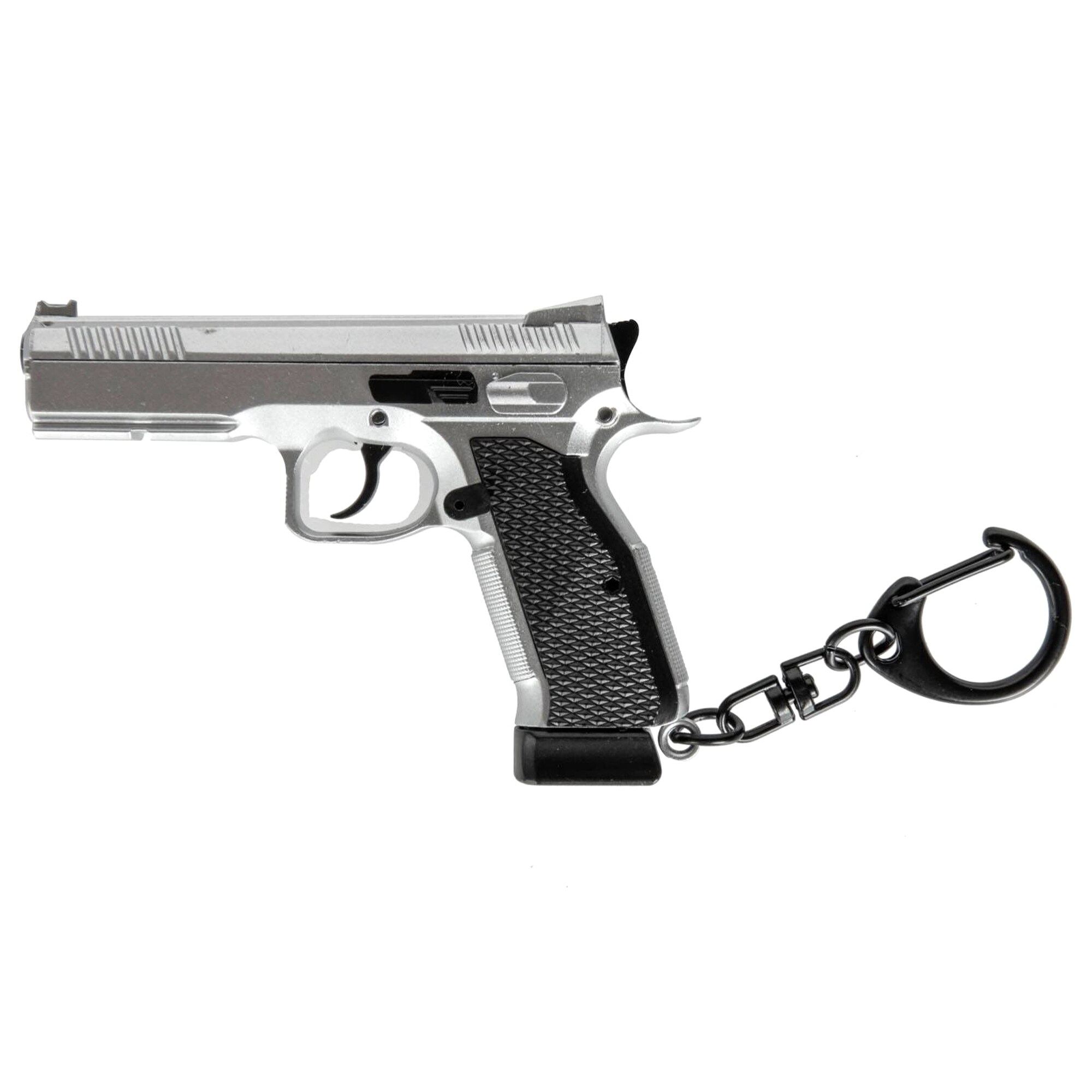 Мініатюрна копія пістолета CZ Shadow 2, цей брелок виготовлений з пластику. Брелок характеризується повною функціональністю. Магазин можна вийняти за допомогою кнопки від'єднання магазину. Мініатюрну копію також можна перезарядити, затягнути замок і зробити холостий постріл.